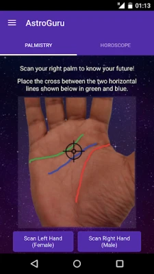 Bu uygulama, doğum gününüz ve avuç içi okumalarınızla servetinizi öğrenmenize yardımcı olur. Astro Guru, tüm avuç içi okumalarında ve tarayıcıda hesaplamalar için gelişmiş görüntü işleme kullanır. Astroloji, ünlü Hintli Gurujilerin kadim Vedik yöntemlerine dayanan, tıpkı Nostradamus gibi bir bilimdir.