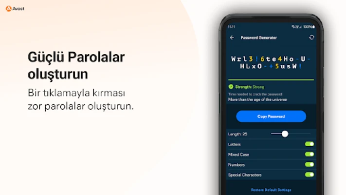 Avast Parola Yöneticisi ayrıca zayıf parolaları algılayarak kullanıcıları güçlü ve benzersiz parolalar oluşturmaya teşvik eder. Bu sayede kullanıcılar, güçlü parolaları hatırlamak için zaman harcamak zorunda kalmazlar.