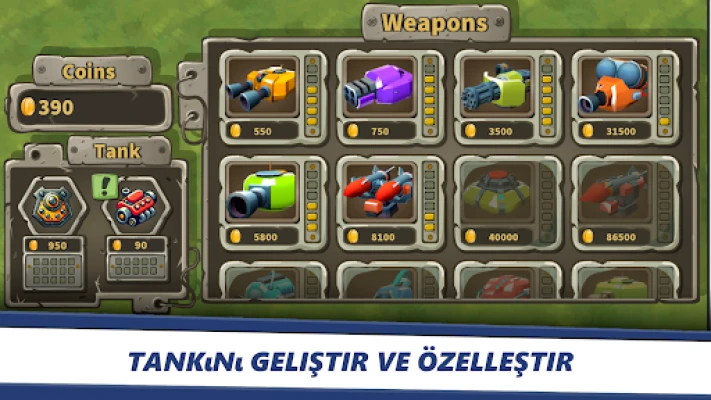 Tankınızın istatistiklerini yükseltmek, yeni silahlar satın almak ve silahlarınızı iyileştirmek için madeni para toplayın. Bu sayede daha güçlü bir tanka sahip olabilir ve rakiplerinize üstünlük sağlayabilirsiniz.