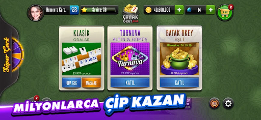 Oda Seç seçeneğiyle farklı seviyelere göre oyuncuların bulunduğu özel odalardan birinde okey keyfini yaşayabilir ve her gün oynayarak efsaneler arasına girebilirsin.