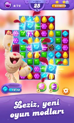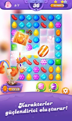 Candy Crush Friends Saga'nın özellikleri arasında yüzlerce 3'lü eşleştirme seviyesi bulunuyor. Yeni arkadaşlarını çıkartma defterinde saklayabilir ve onların kıyafetlerini değiştirebilirsin.