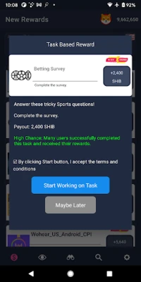 Bu uygulama herkes için geliştirilmiştir ve küçük görevlerin tamamlanmasıyla iyi miktarda para kazanılmasını sağlar. Her görevin net talimatları ve öngörülebilir bir ödülü vardır ve tüm kazançlar yasaldır. Kullanıcıların bir hesap oluşturması, görevleri seçmesi ve tamamlaması, ödülleri hesabına eklemesi ve daha sonra istediği para biriminde çekmesi gerekmektedir.