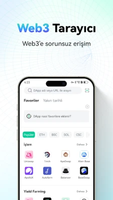 DApp tarayıcısı, ana akım blok zincir DApp'lerine erişimi kolaylaştıran ve merkeziyetsiz ekosistemlere açılan bir kapıdır. Kullanıcılar, çeşitli kategorilerde özenle seçilmiş uygulamalara tek bir yerden erişebilirler.
