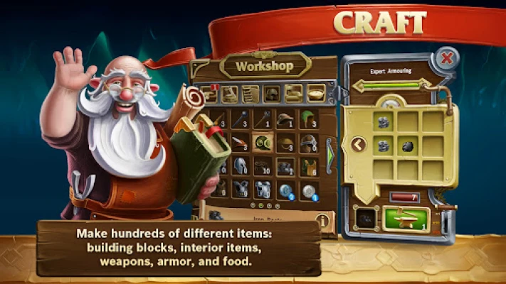 Oyunun bir özelliği, üretim için kullanıcı dostu bir tarif sistemi içerir. Tarifler düzenlenmiş ve kolayca erişilebilir şekilde sunulur. Düzineyi aşkın farklı öğe üretebilirsiniz: evler için yapı blokları, mobilyalar, dekorasyonlar, silahlar, zırhlar, cüceleriniz için yiyecekler.