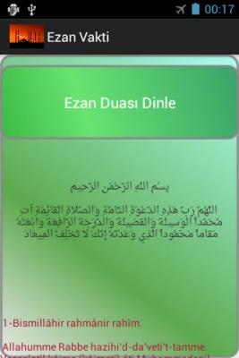 Uygulamada ayrıca, ezan metninin ve ezan duasının Latin ve Arap harfleriyle yazımlarını ve Türkçe anlamlarını bulabilirsiniz. Uygulama, özellikle cami veya mescit bulunmasına rağmen Avrupa ülkelerinde hoparlörden ezan sesinin duyulmadığı durumlarda, kullanıcıların ezan sesini dinleyebilecekleri ve iftar vakitlerini öğrenebilecekleri bir seçenek sunmaktadır.