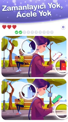 Zaman sınırlaması olmadığı için, kendi temponuzda rahatlayabilir ve farklılıkları bulabilirsiniz. Ayrıca, sınırsız ipuçları sayesinde ihtiyacınız olan kadar zaman ayırabilirsiniz. Kolay zoom özelliği sayesinde detayları daha yakından inceleyebilir ve farklılıkları daha kolay bulabilirsiniz.