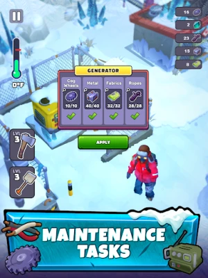 Uygulamanın önemli noktası: Uygulama, zorlu bir çevrede hayatta kalma becerilerini test ediyor. Kar ve buzla kaplı bir dünyada yaşamaya çalışırken, yiyecek ve yakıt gibi temel ihtiyaçlarını karşılamalısın. Kaynakları arayarak ve kampını inşa ederek hayatta kalmaya çalışmalısın.