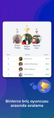 Funbridge, aynı zamanda farklı ülkelerden oyuncularla da karşılaşabileceğiniz uluslararası bir platformdur. Ayrıca briç federasyonları ile yapılan ortaklıklar sayesinde ülkenizin resmi briç sıralamasında yükselme şansı da sunmaktadır. Özel turnuvalar oluşturarak arkadaşlarınızla da briç oynayabilir ve oyunlarınızı analiz edebilirsiniz. Ayrıca, oyununuzu geliştirmek için de briç şampiyonlarından tavsiyeler alabilirsiniz. Funbridge, briç tutkunları için vazgeçilmez bir uygulamadır.