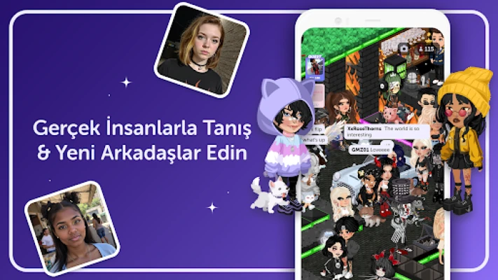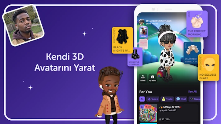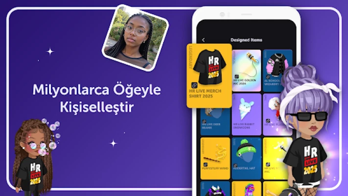 Kendinizi ifade etmek için, gerçek karakterinize uygun bir sanal avatar oluşturabilirsiniz. Profilinizi arka plan ve biyografiyle özelleştirebilir ve favori öğelerinizi sergileyebilirsiniz. Milyonlarca moda stili arasından seçim yapabilir ve yeni giyinme öğelerinden ilham alabilirsiniz. Yetenekli sanatçılar tarafından hayata geçirilen topluluk yarışmalarına katılarak yaratıcılığınızı gösterebilir ve öğeler tasarlayabilirsiniz. Kendi başınıza veya arkadaşlarınızla keyifli vakit geçirebileceğiniz sanal odalar tasarlayabilirsiniz.