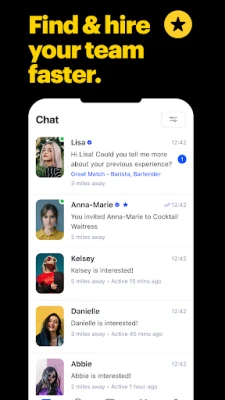 + Adaylarla görüşün ve yerleşik sohbet özelliğimiz aracılığıyla mesajlaşın.