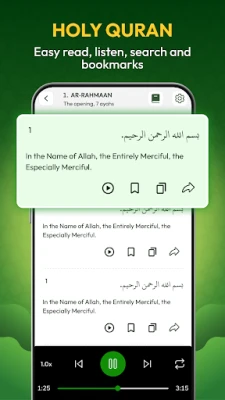 Bu uygulama, Müslümanlar için en optimize edilmiş uygulamalardan biridir. İçinde birçok özellik bulunmaktadır. Bunlar arasında Kabe yönünü bulma, ezan vakitleri, Kur'an okuma, 99 isim, sabah ve akşam namazı için okumalar ve dijital tesbih sayacı gibi özellikler yer almaktadır. Bu uygulama sayesinde Müslümanlar, manevi yolculuklarında kolaylıkla Kabe yönünü bulabilir, namaz vakitlerini kaçırmaz ve her zaman Kur'an-ı Kerim'i okuyabilirler.