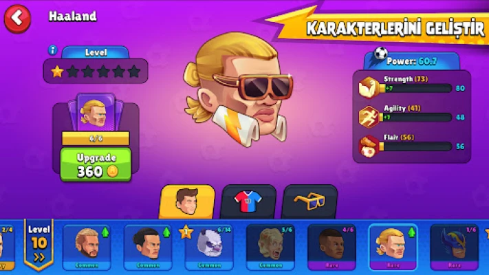 Oyunda yüzlerce aksesuar arasından seçim yaparak karakterinizi özelleştirebilir ve sahada fark yaratabilirsiniz. İlerledikçe yeni futbol karakterleri açabilir, kozmetik ödüller kazanabilir ve favori karakterlerinizi güçlendirebilirsiniz. Kendi stilinizi yaratmak ve diğer oyuncular arasında öne çıkmak için karakterinizi geliştirmelisiniz.