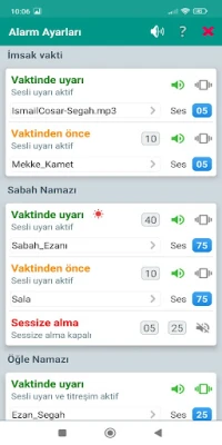 Uygulama aynı zamanda namaz vakitlerinde sessize alma seçeneği sunar, böylece kullanıcılar namaz ibadetlerini rahatça gerçekleştirebilirler. Ayrıca kerahat ve teheccüd namazları için ayrı uyarılar da ayarlanabilir.