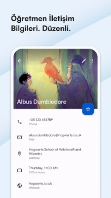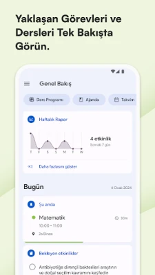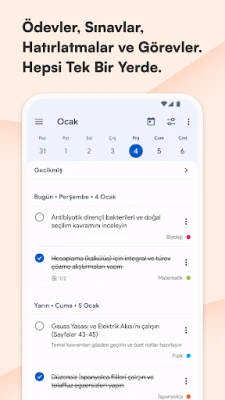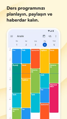 Ödevleri, projeleri, sınavları ve hatırlatmaları not almak son derece kolay ve hızlıdır; günlük bildirimler sayesinde hiçbir şeyi unutmazsınız. Dahili takvim, öğrencilerin ihtiyaçlarına göre optimize edilmiştir ve etkinliklerinizi, aktivitelerinizi daha kolay yönetmenizi sağlar. Bu uygulama sayesinde öğrenciler, günlük yaşamlarında önemli olan ödevler, projeler, sınavlar ve hatırlatmaları kolaylıkla not alabilir ve günlük bildirimler sayesinde asla unutmazlar. Ders programınızı ve günlük planınızı her zaman elinizin altında tutabilirsiniz ve çalışmalarınızı buna göre planlayabilirsiniz. Ders programı oldukça özelleştirilebilir ve her derse farklı renkler atayarak daha görsel bir deneyim yaşayabilirsiniz. Ayrıca takvimde kayıtlı etkinlikleri görüntüleyerek derslerinizi daha rahat bir şekilde takip edebilirsiniz. Notlarınızı ve derslerinizi yönetebilir ve otomatik ortalama hesaplaması sayesinde ilerlemenizi güncel olarak takip edebilirsiniz. Bu sayede öğrenciler, derslerindeki performanslarını organize bir şekilde takip edebilir ve gerekli düzenlemeleri yapabilirler. Derslerinizi kaydedip otomatik olarak düzenleyebilirsiniz. Bu özellik sayesinde öğrenciler, derslerine kolaylıkla erişebilir ve zaman kaybetmeden çalışmalarını yapabilirler. Öğretmenlerinizin iletişim bilgilerini kaydederek, telefon numaralarını, ofis saatlerini ve e-posta adreslerini organize edebilirsiniz. Bu sayede öğrenciler, öğretmenleri ile daha kolay iletişim kurabilir ve sorularını hızlı bir şekilde çözebilirler. Tüm cihazlarınızla ajandanızı senkronize edin ve verilerinizi Google Drive'a yedekleyin. Bu sayede öğrenciler, her zaman ve her yerde güncel verilere erişebilirler ve kayıp veri riskinden kurtulabilirler. Bu uygulamanın güzel ve modern tasarımı, Google'un Material Design anlayışından esinlenerek kullanıcı deneyimini her açıdan sezgisel ve keyifli kılmayı amaçlamaktadır. Bu sayede öğrenciler, uygulamayı kullanırken zorlanmadan ve eğlenerek ödevlerini ve derslerini takip edebilirler. Temel özellikler arasında bulunan basit, hızlı ve sezgisel kullanım, ödev, sınav ve hatırlatma ajandası, ders programı, takvim ve güzel, renkli temalar sayesinde öğrencilerin hayatını kolaylaştırmayı amaçlamaktadır. Ayrıca Google Drive'a yedekleme özelliği sayesinde öğrenciler, verilerini güvenli bir şekilde saklayabilirler. Bu uygulama, öğrencilerin derslerindeki performanslarını takip etmelerine yardımcı olmak amacıyla tasarlanmıştır.