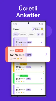 Uygulama, kullanıcıların fikirlerini paylaşarak ödüller kazanmalarını sağlar. Marka anketlerine katılıp görüşlerini paylaşan kullanıcılar, nakit veya hediye kartı kazanabilirler. Her gün eklenen yeni anketlerle düzenli bir gelir elde etmek de mümkündür.