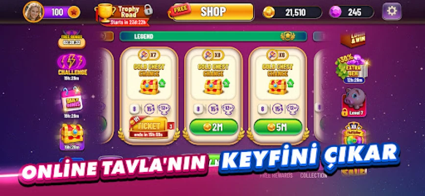 Tavla Plus aynı zamanda sosyal bir oyun deneyimi de sunmaktadır. Facebook hesabınızı kullanarak arkadaşlarınızla oynamanız ve ilerlemenizi paylaşmanız mümkündür. Ayrıca oyuna her gün giriş yaparak görevleri tamamlayarak ve çarkı çevirerek ödüller kazanabilirsiniz.