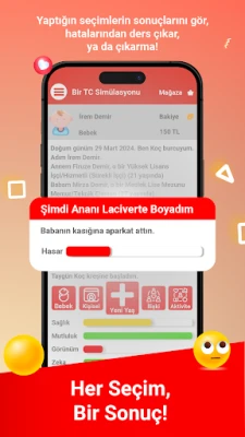 Bu uygulama, Türkiye'de yetişkin yaşamını simüle etmek için tasarlanmış ilk metin tabanlı yaşam simülatörüdür. Ancak, bu uygulama sadece bir oyun değildir, aynı zamanda gerçek hayatın da bir yansımasıdır. İnsanlar tercihleriyle yaşarlar ve bu uygulama da kullanıcıların tercihlerine göre bir yaşam deneyimi sunar. Hayatın farklı yönlerinde karşılaşabileceğiniz seçimlerin sonuçlarını tozu dumana katarak veya tozu dumanı yutarak görebilirsiniz. Bu seçimler, kullanıcıların kendi hayatlarında da karşılaşabilecekleri durumlara benzer olabilir. Seçim sizin, bu yüzden yapacağınız kararlar sizin hayatınızı nasıl etkileyeceğini göz önünde bulundurarak verilmelidir. Eğer hayal ettiğiniz hayatı yaşayamıyorsanız, belki de yaşadığınız hayat sizin için uygun değildir. Bu uygulama, kullanıcıları hayallerindeki hayata yaklaştırmayı ve hayat oyunundaki başarınızın kararlarınızdan nasıl etkilendiğini öğrenmeyi amaçlamaktadır. Gözünüzü hayal ettiğiniz hayata dikin ve bu uygulama sayesinde yeni bir hayat başlatın. Artık sizin hayatınızı kontrol etme ve hayallerinize ulaşma zamanı!