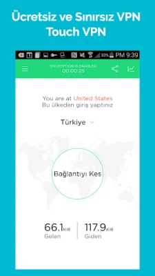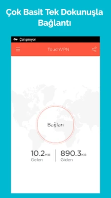 Touch VPN Proxy ücretsiz bir VPN uygulamasıdır. Kredi kartı bilgisi istemez ve deneme süresi yoktur. Sınırsız bir şekilde kullanılabilir, oturum, hız veya bant genişliği sınırlaması yoktur. Basit bir kullanıma sahiptir, tek bir dokunuşla bağlan düğmesine tıklayarak dünya genelindeki tüm engelleri kaldırabilirsiniz. Güvenli bir uygulamadır, güçlü bir VPN SSL şifreleme sistemi kullanır ve bu sayede tamamen anonim ve güvende olmanızı sağlar. Destek odaklı bir uygulamadır, geribildirim ve önerilere açıktır ve bu konuda support@northghost.com adresine e-posta gönderebilirsiniz.