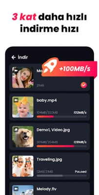 Tüm Video İndirici ve Oynatıcı, HD ve 4K/UHD gibi tüm video biçimlerinde hızlı indirme ve sorunsuz oynatma özelliklerine sahiptir. Ayrıca, gizliliğinizi korumak için videoları özel klasörlerde gizlemenizi de sağlar. Bu uygulama sayesinde, görsel-işitsel bir şölenin keyfini çıkarabilir ve istediğiniz filmleri rahatça indirip izleyebilirsiniz.