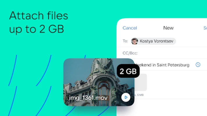 Büyük dosyalar gönderebilirsiniz. Bir e-postaya bir film veya tatil fotoğraflarınızın tamamını ekleyebilirsiniz: VK Mail ajanı dosyaları sıkıştırmadan ve bağlantıya dönüştürmeden 2GB'a kadar gönderebilir.