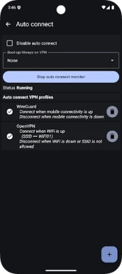OpenVPN, temel olarak ücretsiz bir özelliktir ve herkes tarafından kullanılabilir. Ancak diğer protokoller ve özellikleri kullanmak için bir lisans satın almanız gerekir. Bu başvurulan izinlerin amacı şunlardır: depolama izni, VPN yapılandırmalarını içe aktarmak ve günlükleri/ yedeklemeleri/dll. gibi çeşitli verileri dışa aktarmak için kullanılır (Android < 10). Konum izni, mevcut Wi-Fi SSID'sini almak için kullanılır. SSID, otomatik bağlantı işlevi için gereklidir. Cihazın konumu okunmaz (Android >= 8.1). Bluetooth (yakındaki cihazlar) izni, cihazın kullanıcı tarafından seçilen Bluetooth cihazlarına bağlandığında VPN'nin bağlantısını kesmek için kullanılır. QUERY_ALL_PACKAGES izni, kullanıcının VPN'yi kullanmasına izin verilen/izin verilmeyen uygulamaları seçmesine izin vermek için kullanılır. Uygulama içindeki birçok izin, kullanıcının VPN'i daha etkili bir şekilde kullanmasını sağlamak için kullanılır.