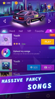 Bu uygulama size heyecan verici bir oyun deneyimi sunuyor. 10 farklı araç arasından seçim yapabilir ve en sevdiğiniz şarkıyı oynayabilirsiniz. Oyunun amacı, ritmi yakalayarak arabayı sürükleyerek ilerlemek ve dikkatli olmak. Hiçbir ritmi kaçırmamaya dikkat edin!